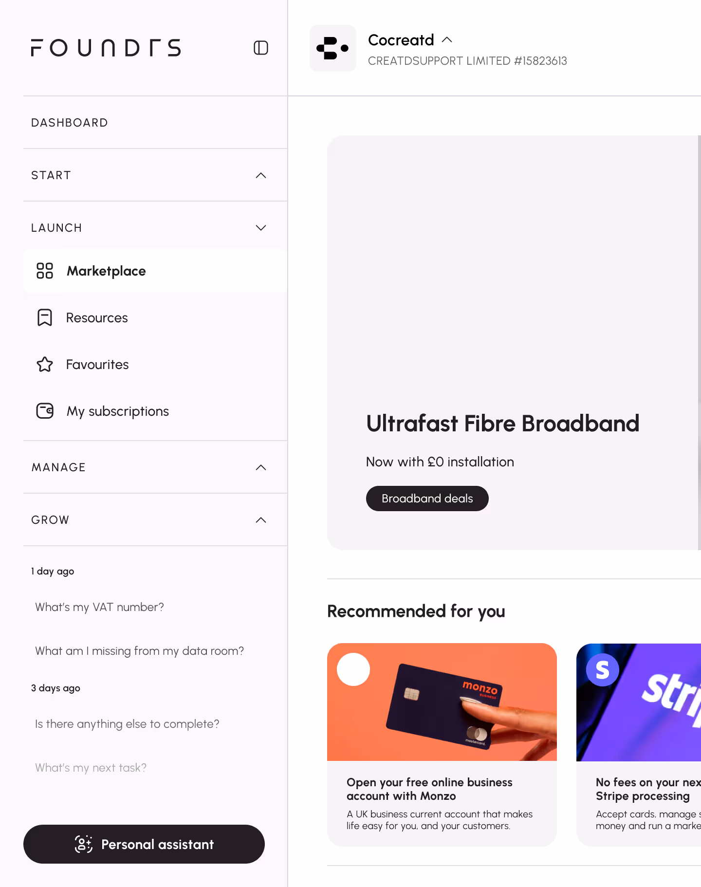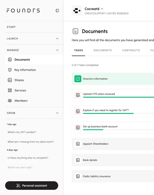 Check availability and lock in your company name— speak with our AI, and Foundrs handles the rest.
